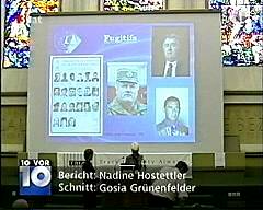 Anmerkung: Es wäre wichtig zu erfahren, ob bzw. wie sich der Angeklagte zu der Video-Vorführung geäußert hat. Eine auf Objektivität bedachte Berichterstattung hätte daran ebenso ein Interesse. Aber wir erfahren in dem 10-vor-10-Beitrag nichts dergleichen. Eine AP-Meldung vom 8.6.2005 gibt darüber Aufschluß. Dort heißt es: "Das Video nannte er eine willkürliche Zusammenstellung von Bildmaterial ohne Datum und Kennzeichnung des Ortes oder der Opfer." Und in der englischen Fassung: "He called the video a 'compilation' that did not say when or where it was made, or prove that the victims were from Srebrenica."