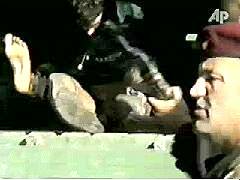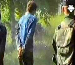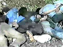 - "The video... shows six emaciated men being removed from a canvas covered military truck... Two are taken away and tortured in a house. Eventually all six are lined up with their hands tied behind their backs and shot with machine guns. -- Das Video zeigt sechs ausgemergelte Männer, wie sie aus einem mit Zelttuch überdachten Militärlastwagen fortgeschafft werden... Zwei werden weggebracht und in einem Haus gefoltert. Schließlich werden alle sechs mit hinter ihren Rücken zusammengebundenen Händen aufgestellt und mit Maschinengewehren erschossen." (New York Times, 3.6.2005, Nicholas Wood)