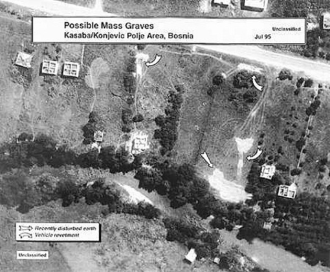 Sie schreiben in der Bildlegende zu dem Satellitenbild, das Sie als Hintergrund für Ihre website verwenden: "Nord-Osten von Bosnien-Herzegowina +++ Konjevic Polje, Nova Kasaba +++ Juli 1995 +++ Massengrab, entdeckt von der US Luftaufklärung".